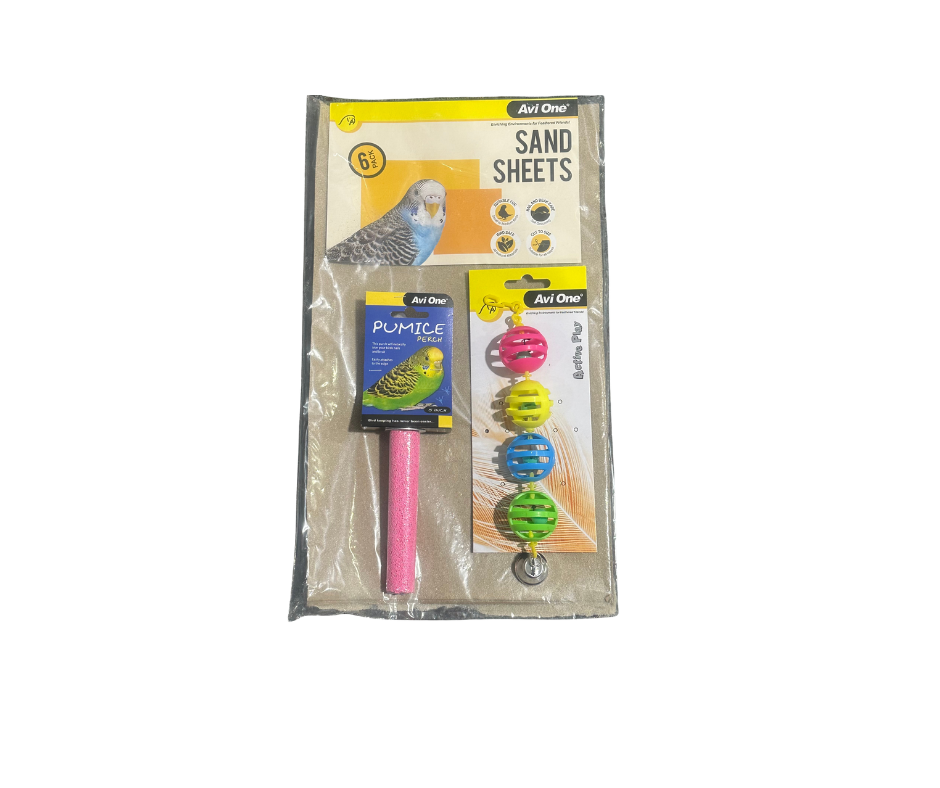 Comes with 1 swing, 2 perches and 2 seed/water cups