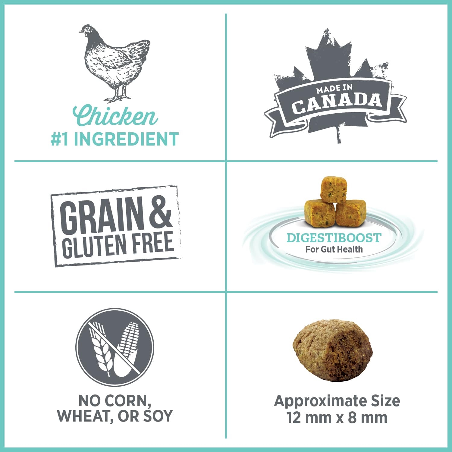 Chicken, chicken meal, potato protein, chicken fat, chickpeas, lentils,