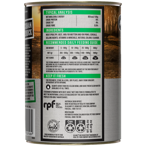 STOCKMAN & PADDOCK WITH BEEF ADULT WET DOG FOOD is formulated to meet the nutritional levels established by the AAFCO Dog Food Nutrient Profiles for All Life Stages.