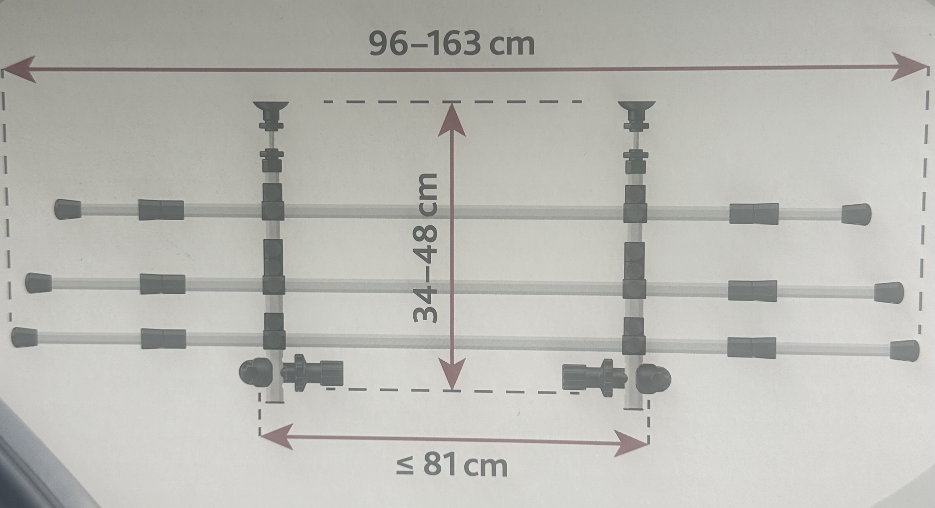 Adjustable Width : 96-163cmAdjustable Height : 34-48cm